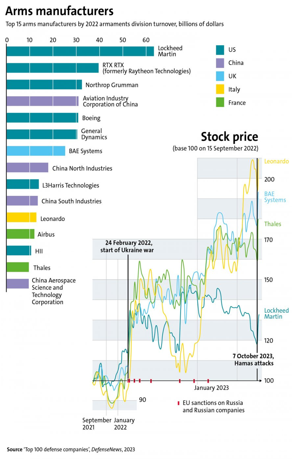 EXCERPT: Arms spending has rocketed since Russia invaded Ukraine, as nations scramble to upgrade their arsenals in a volatile geopolitical climate. For arms manufacturers, this means fat profits.