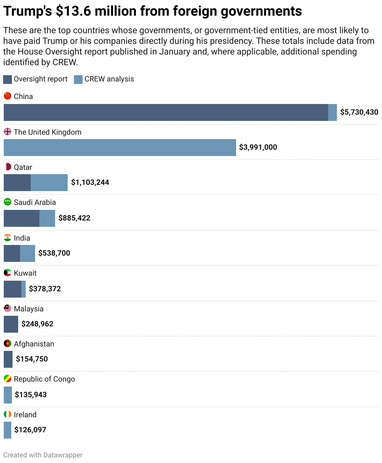 https://www.citizensforethics.org/reports-investigations/crew-reports/trump-likely-benefited-from-13-6-million-in-payments-from-foreign-governments-during-his-presidency/